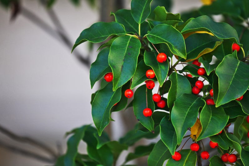 そよごは、落ち着いた濃緑色の葉と秋から冬にかけての赤く熟した実によって、和洋を問わずあらゆる庭に彩りをもたらします。常緑樹として、一年中緑を楽しむことができ、目隠しや生垣にも最適。成長が遅く大きくなりすぎないため、管理がしやすく、シンボルツリーとしても人気です。