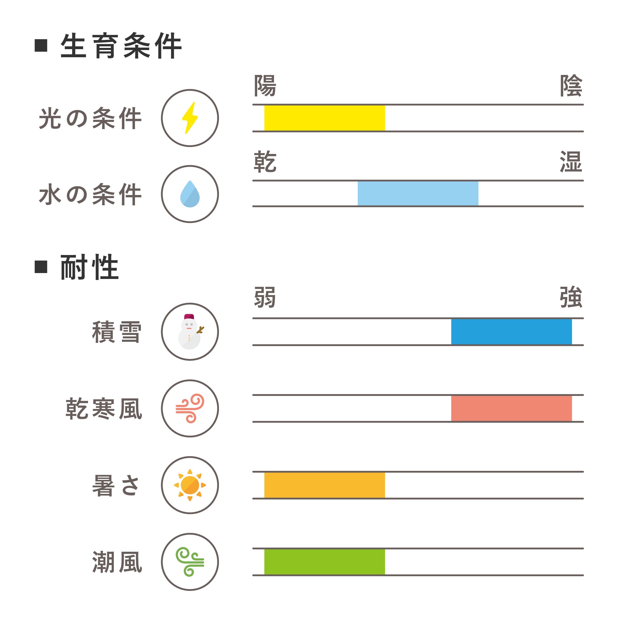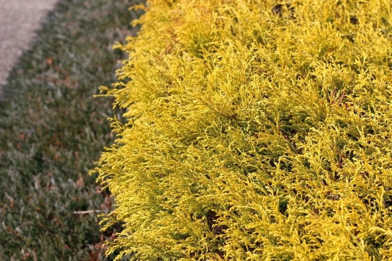ヨーロッパゴールドは、端正な円錐形の樹形と一年中美しい黄色の葉色で、洋風の庭園に明るさと洗練された雰囲気をもたらす常葉高木です。日本全域で栽培可能で、特に関東以北の寒冷地での生育が良好。生長が早く、萌芽力と復元性もあります。5月には裸花が咲き、フィトンチッドという香り成分を含むため、芳香を楽しむことができます。生け垣や防風垣として列植すると効果的で、維持管理が少なくて済み、移植も容易。黄色の葉色を楽しむ用途だけでなく、目隠しや生垣用としても優れた機能性を持ち、庭に鮮やかな彩りを加える魅力的な樹木です。