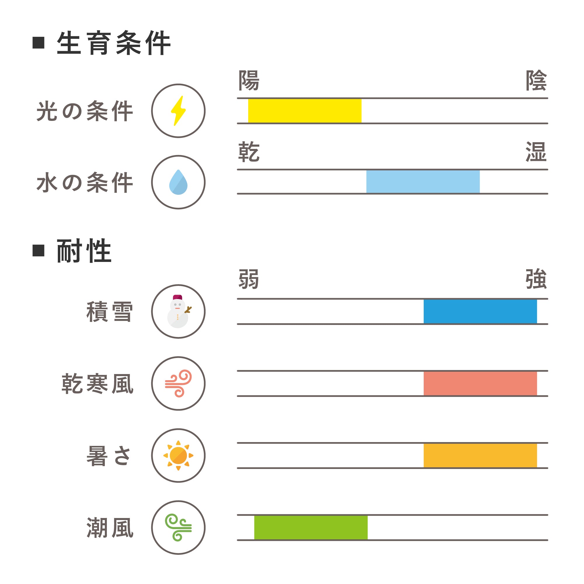 北海道南部以南で栽培可能で寒さに強く成長も早く、萌芽や復元性もあるので、管理が容易。庭木やシンボルツリーに適しています。