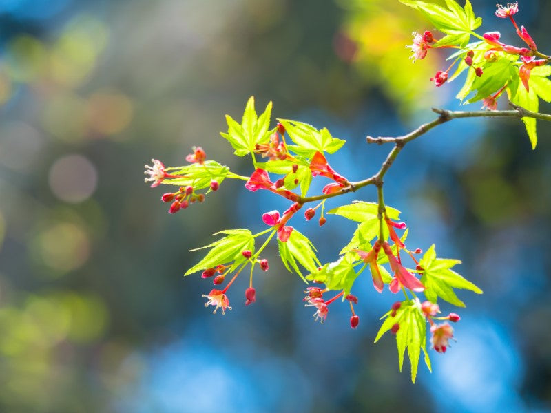春には新葉と共に小さな赤い花が咲き、秋には鮮やかな紅葉で知られ、四季を通じて楽しむことができます。ヤマモミジという変種もあり、こちらは一回り大きい葉と野趣あふれる姿が特徴で、日本海側に多く分布しています。その美しい姿で庭を彩るだけでなく、季節の移り変わりを感じさせる魅力的な樹木です。庭園に雑木風の自然な美しさを加えてくれるでしょう。