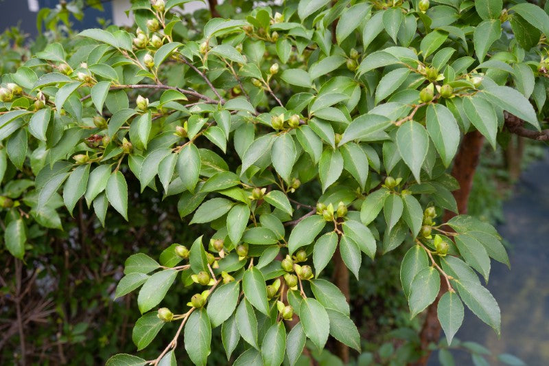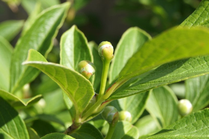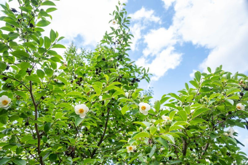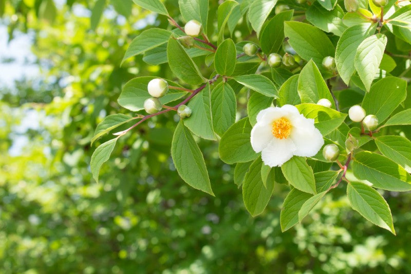 夏椿は、和風の庭にぴったりの落葉高木で、その端正な樹形と明るい緑色の葉が特徴です。6月に咲くツバキに似た白い花は、洗練された美しさがあります。樹皮の赤褐色と鹿の子模様、秋には紅葉し、年間を通じての視覚的な楽しみをもたらします。北海道南部以南で栽培でき、寒さに強く、早期に樹形が安定し成長も比較的早いため庭木として扱いやすいです。萌芽力も強いため、移植も容易ですが、乾燥や重い土壌は避けるようにしましょう。自然の豊かさと美しさを和風の庭に映えさせる夏椿は、いずれの場所にも穏やかな雰囲気をもたらします。