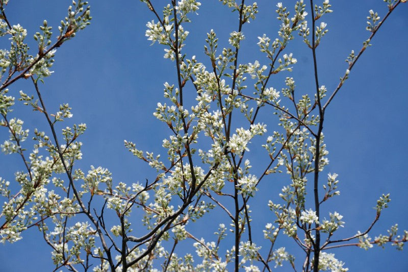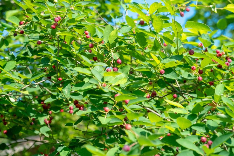 ジューンベリーは、春の純白の花から夏の甘い実、そして秋の鮮やかな紅葉まで、四季折々の美しさを見せてくれる落葉樹です。東北南部以南の地域で生育可能と寒さにも比較的強く、樹形が早期に安定するため、手入れがほとんど不要なのも魅力。実は紅から紫に色づき、そのまま食べるだけでなくジャムや果実酒に加工することもできます。街路樹やシンボルツリー、景観樹としても非常に人気があり、低木性の品種も存在するため、様々な庭園デザインに適応します。
