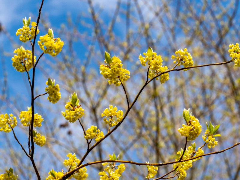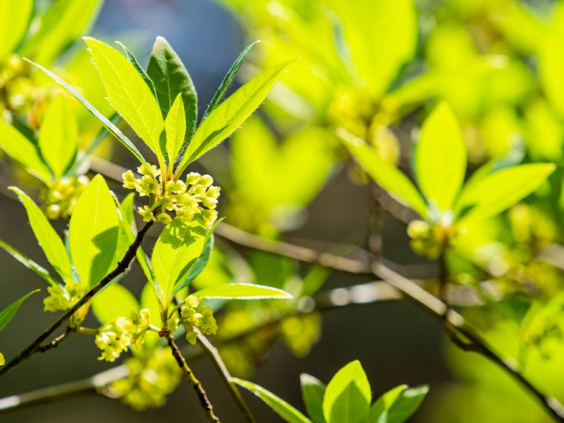 クロモジは、繊細な美しさと心地よい香りで、和風から洋風までさまざまな庭園に調和する落葉低木です。東北地方以南で育ち、日向から半日陰の環境に適しています。気品のある樹形と春に新芽とともに咲く花は、庭に繊細な美しさを添えます。虫がつきにくいのも特徴で、庭木としての利用に適しています。控えめながらも魅力的な存在で、庭に自然な美しさと和みを加える樹木です。